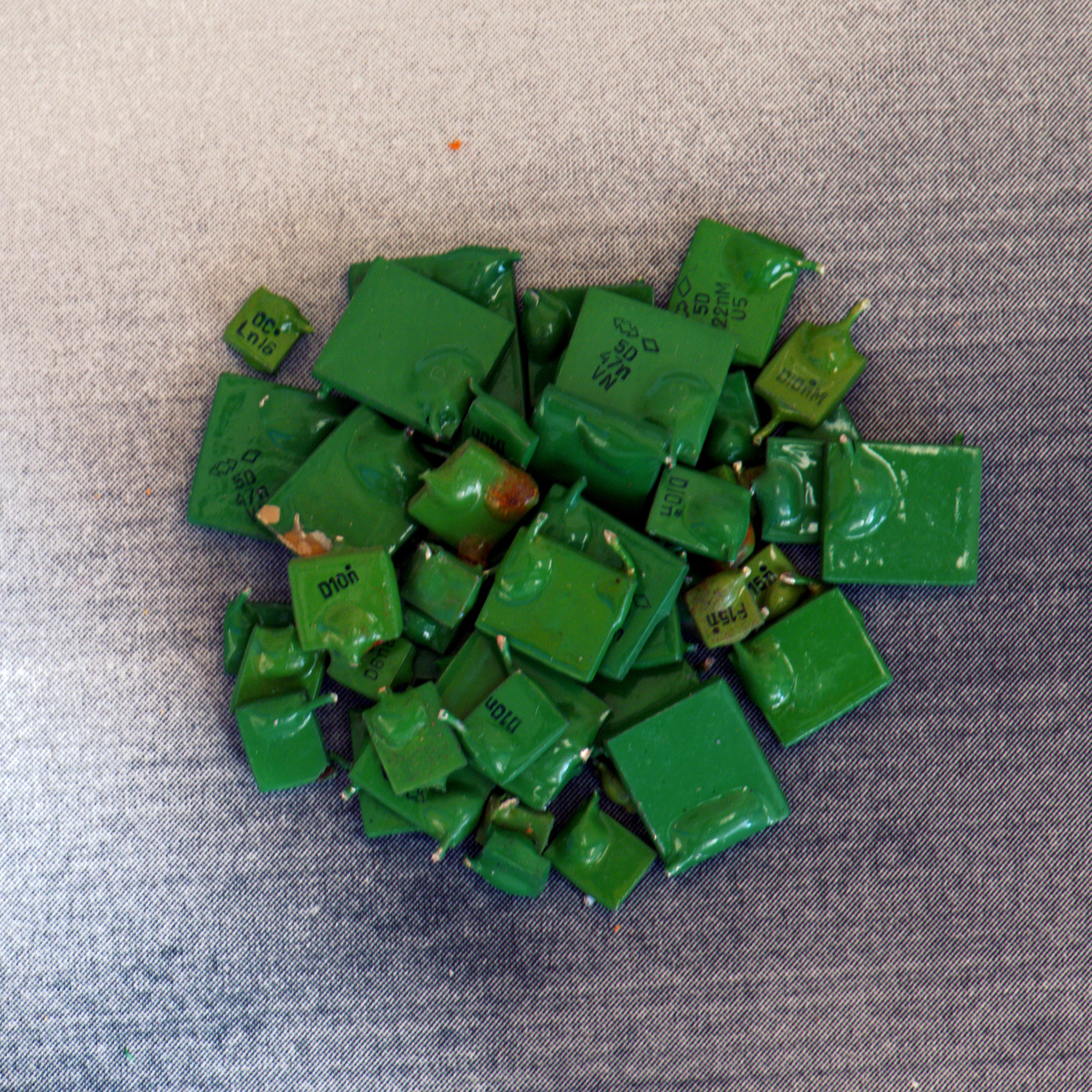 В КМ зеленых D конденсаторах содержатся драгоценные металлы, такие как золото, серебро и палладий. Мы осуществляем переработку этих конденсаторов и извлекаем ценные металлы для их последующей продажи.